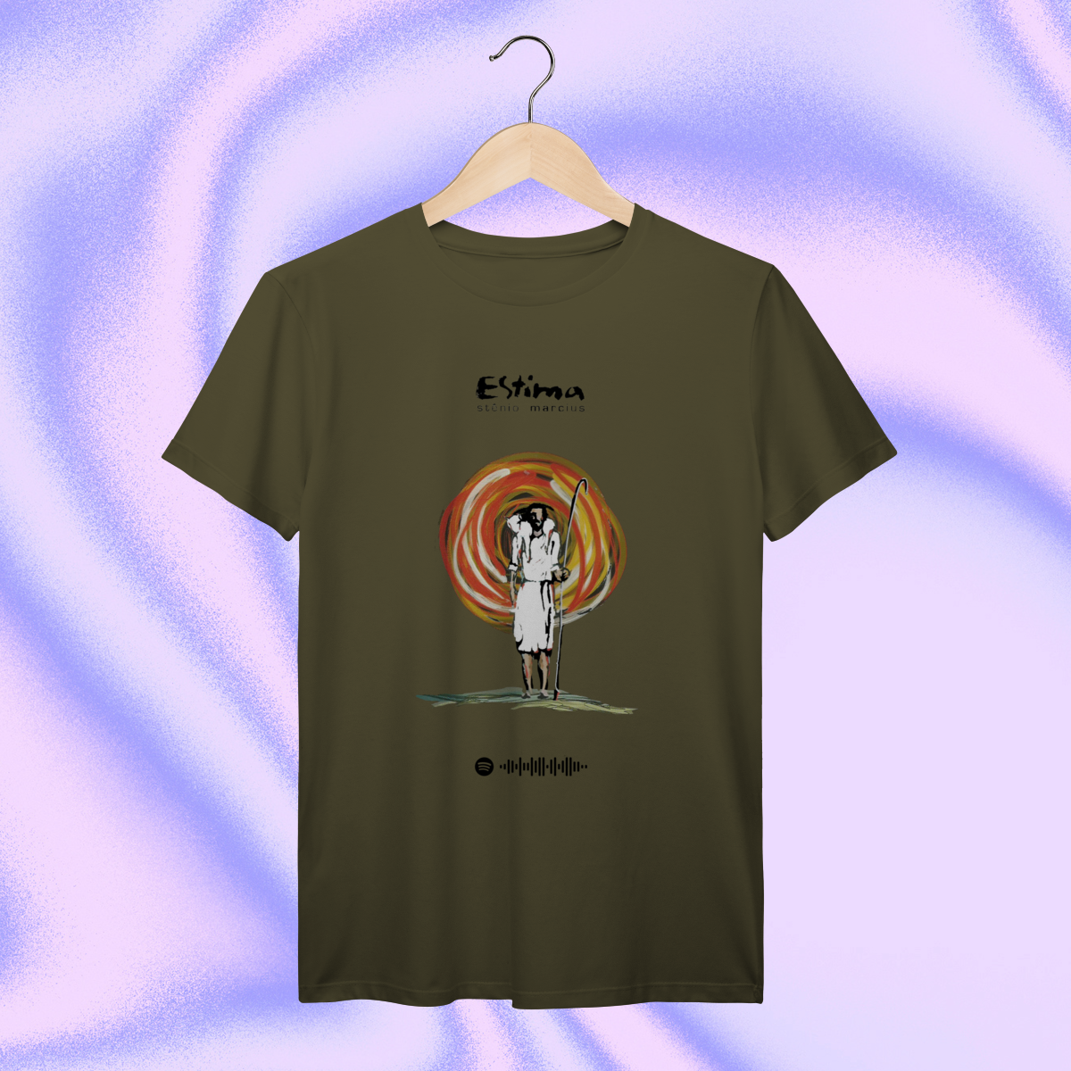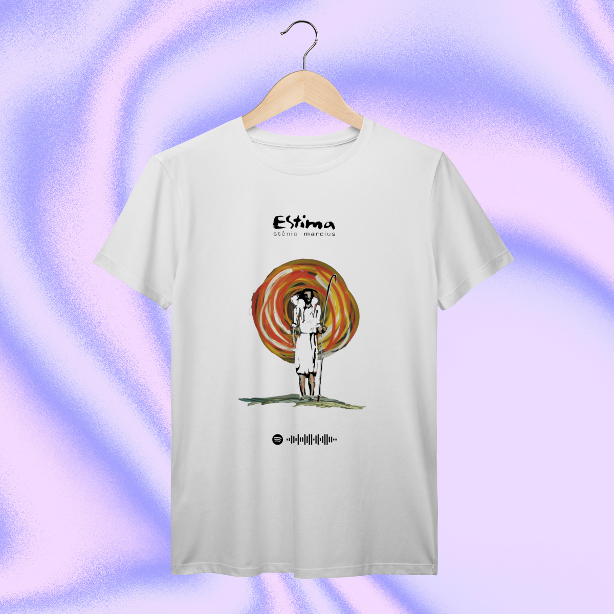 Esta camiseta traz a capa do álbum Estima, uma das obras mais marcantes de Stênio Marcius, e apresenta também o código Spotify, permitindo ouvir o álbum diretamente ao aproximar o celular.